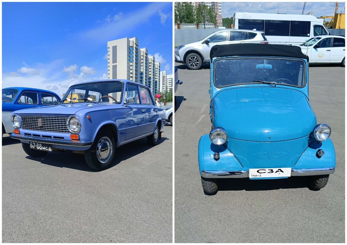 На выставке также были представлены ВАЗ-2101 и двухместный четырехколесный автомобиль-мотоколяска, который в советское время называли «инвалидкой».