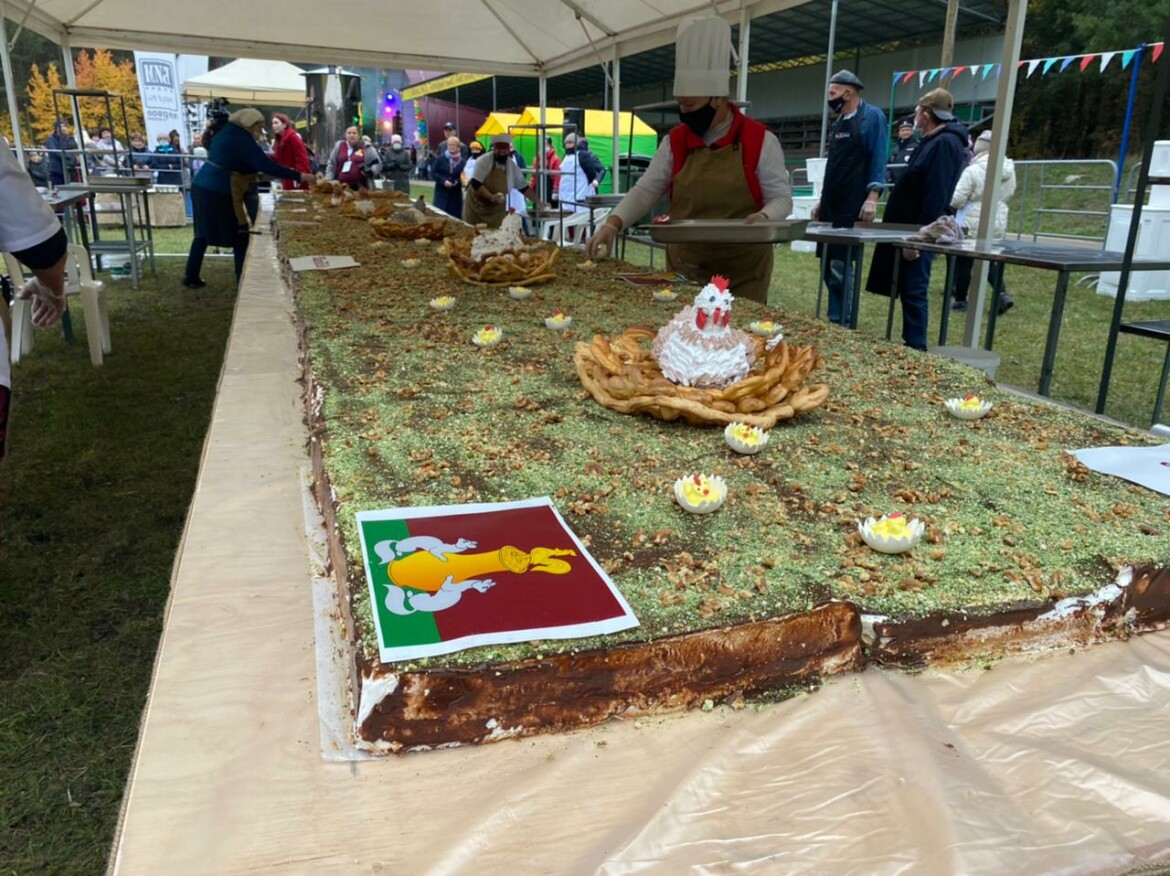 Ежегодно «Скорлупино» организуют яркую и насыщенную программу. 2 октября гостей фестиваля ждало немало сюрпризов. Главным событием фестиваля стал гигантский торт весом 450 кг, а также самый большой самовар нашей республики, специально изготовленный для праздника. Как рассказала организатор фестиваля Наиля Тазиева, на изготовление сладкого рекорда ушло на 450 кг бисквита и безе с кремовой прослойкой и шоколадом ушло 100 кг сгущенного молока, 50 кг мука, 50 кг сахара, по 15 кг орехов и изюма, более 20 кг шоколада и огромное количество яиц. Длина десерта составила 10 метров, ширина — 1,5 метра.