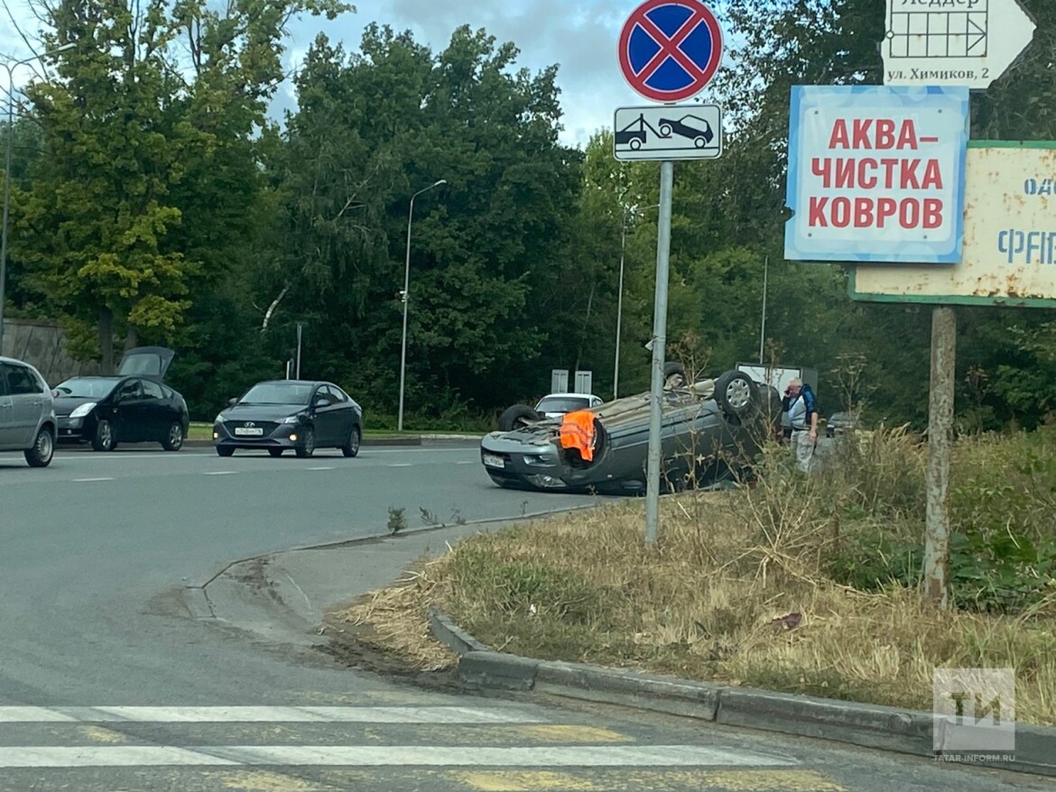 На Тэцевской в Казани легковушка перевернулась на крышу после столкновения с другим авто