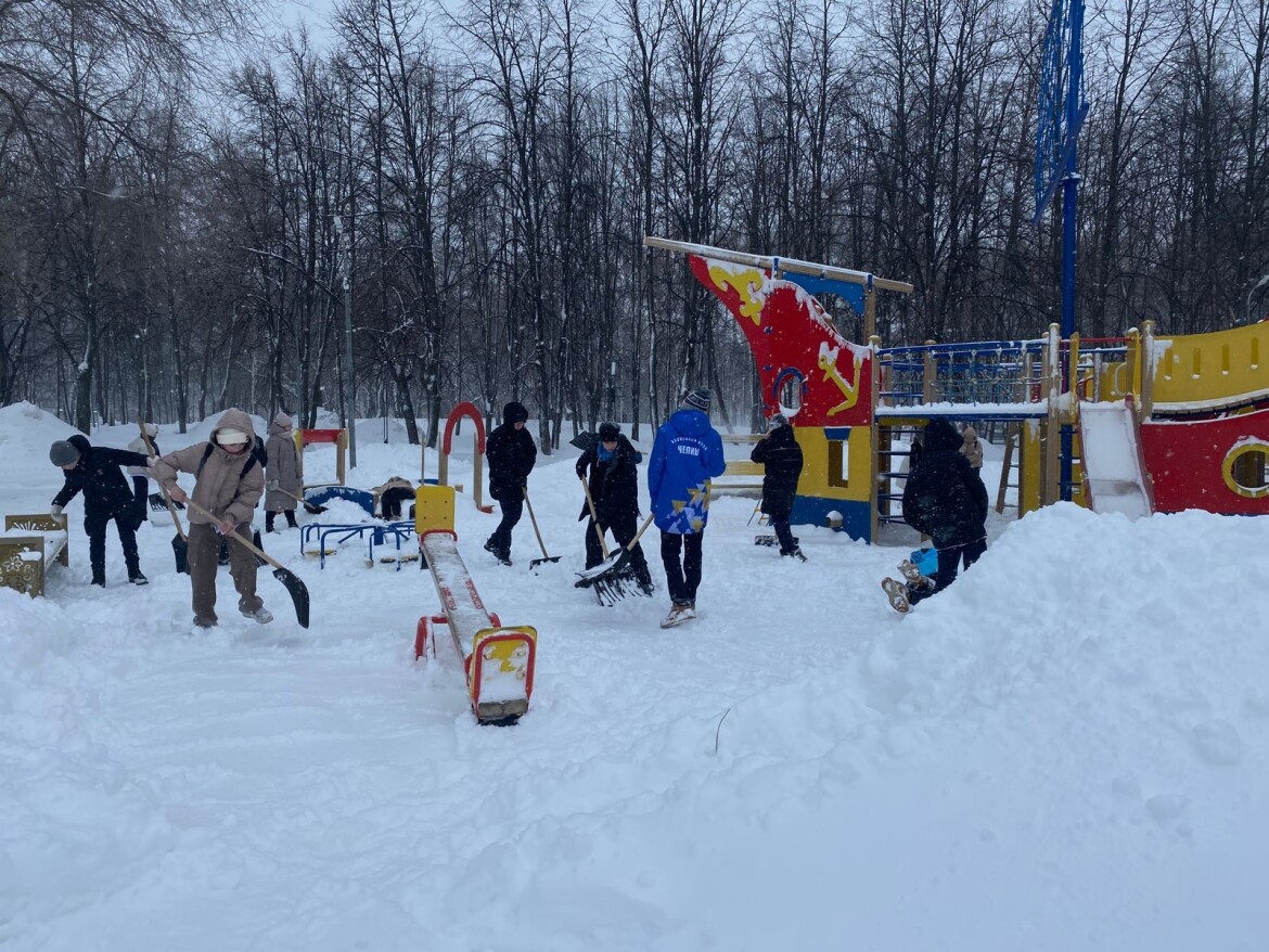 А активные жители 54/01, 27-го, 28-го, 53-го, 54-го, 64-го и 65-го микрорайонов Автозаводского комплекса вместе с представителями ТОС вышли на очистку от снега своих дворов.