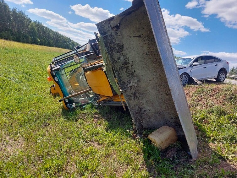 На трассе М 7 легковушка опрокинула экскаватор, водитель в больнице