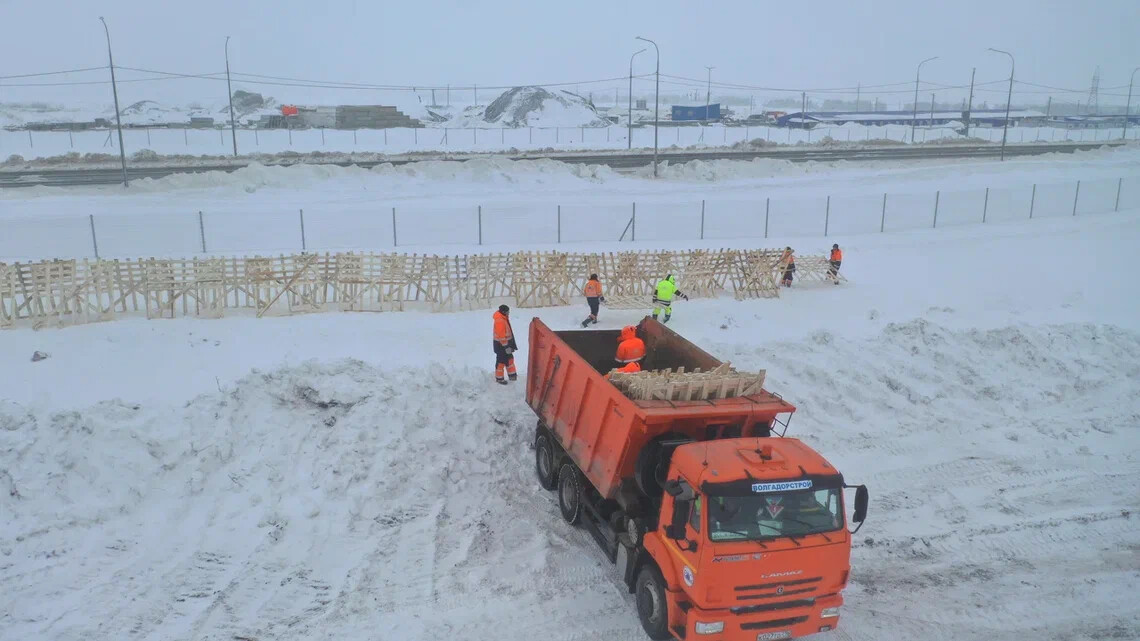 Умеренков пояснил, что снег будет скапливаться вдоль конструкций и не будет переноситься дальше на дорогу. Что касается снежных валов, которые нарезаются, то снег будет задерживаться внутри них.