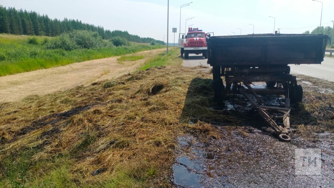 Сообщение о том, что на трассе М7 в районе Шали горит прицем с сеном, поступило сегодня в 9.36. Об этом «Татар-информу» сообщили в пресс-службе ГУ МЧС России по РТ.