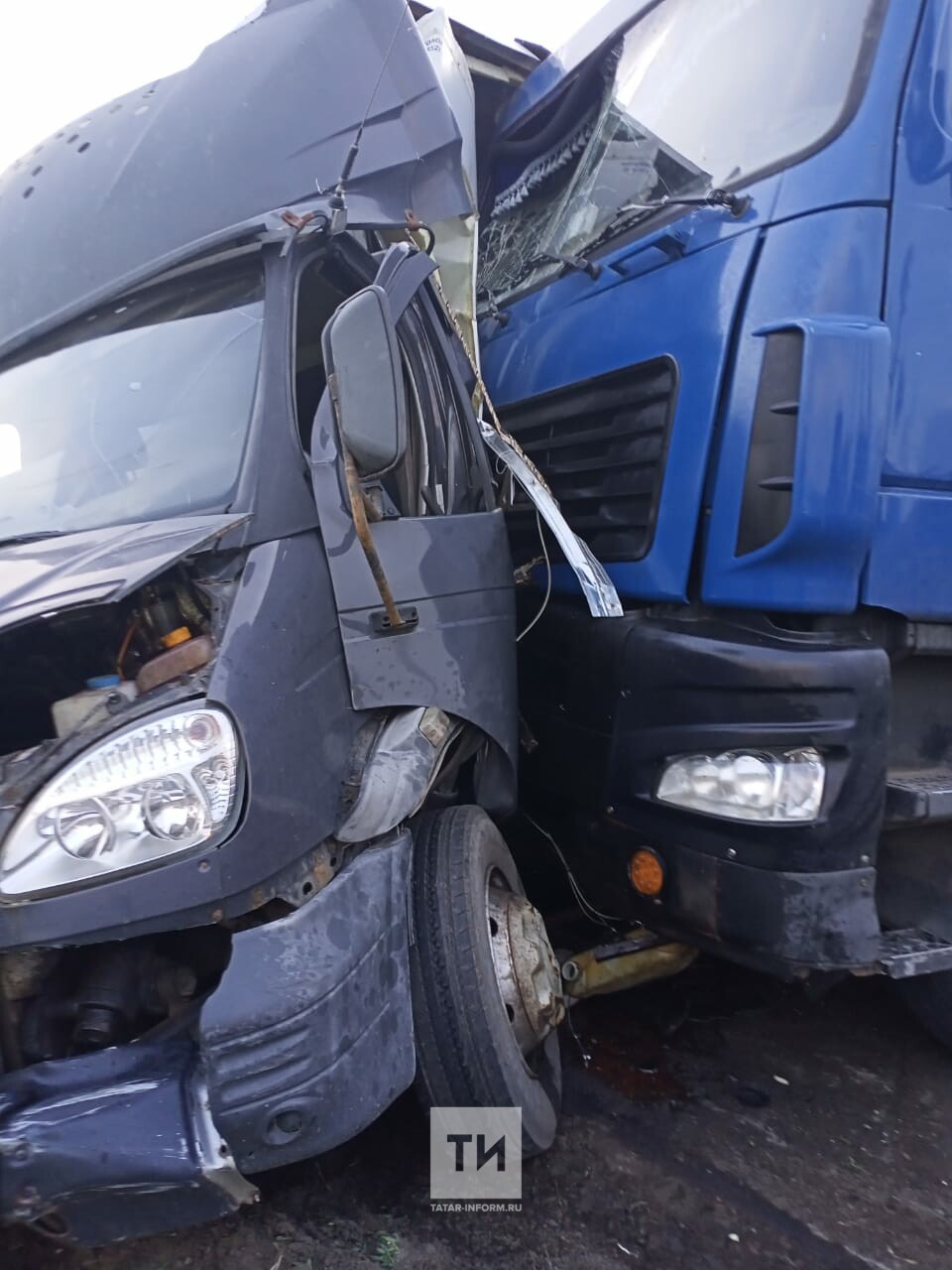 Как рассказали ИА «Татар-информ» очевидцы, авария произошла накануне в седьмом часу вечера на федеральной трассе М7 в Елабужском районе Татарстана. По невыясненным пока причинам, водитель грузовика «МАЗ» снес с дороги и вжал в отбойник грузовую «ГАЗель». От мощного удара у большегруза разлилось на дорогу топливо.