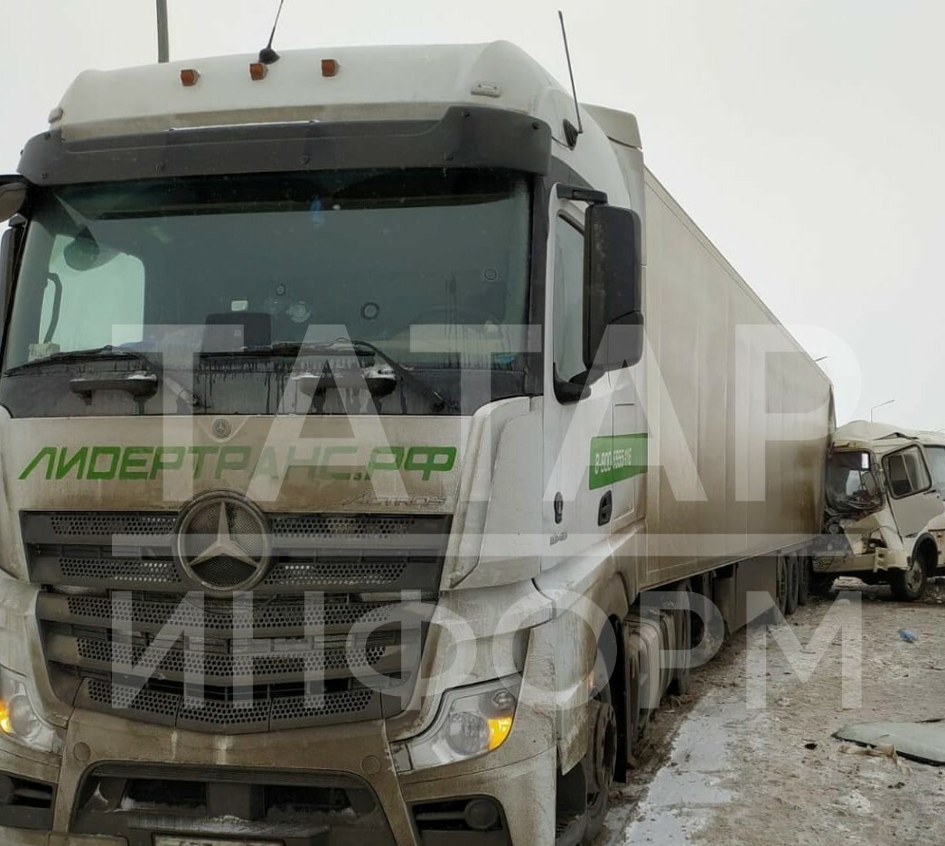 На трассе под Казанью вахтовый автобус въехал в стоящую фуру