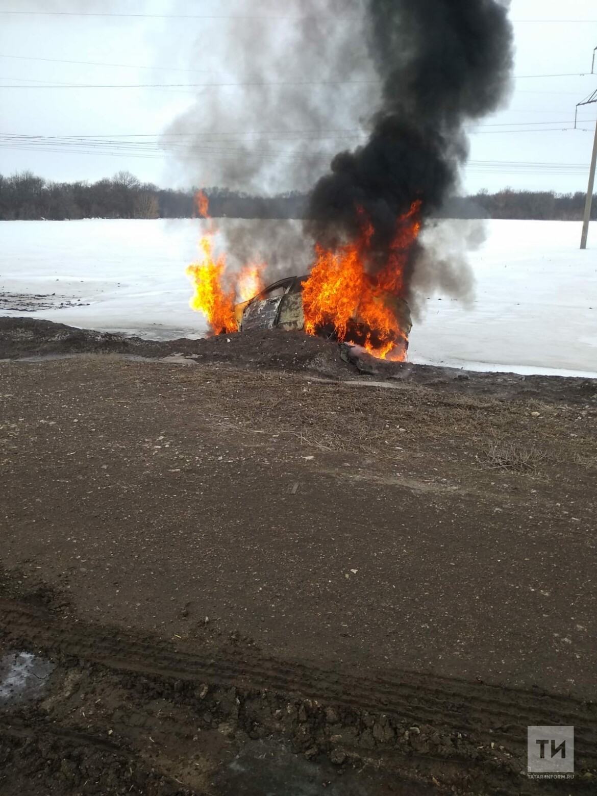 На трассе в РТ легковушка загорелась на ходу, водитель и пассажир получили ожоги