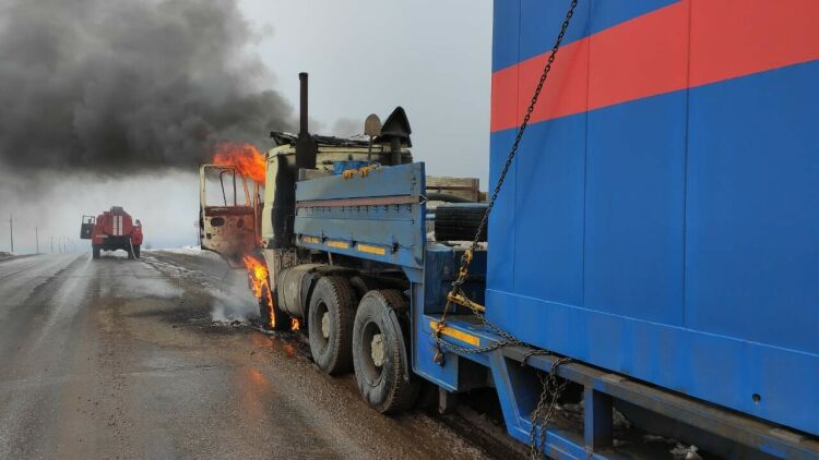 Накануне в 11.33 на номер вызова пожарной охраны 101 от очевидца поступило сообщение, что на автодороге Кузайкино - Русский Акташ горит большегруз.
