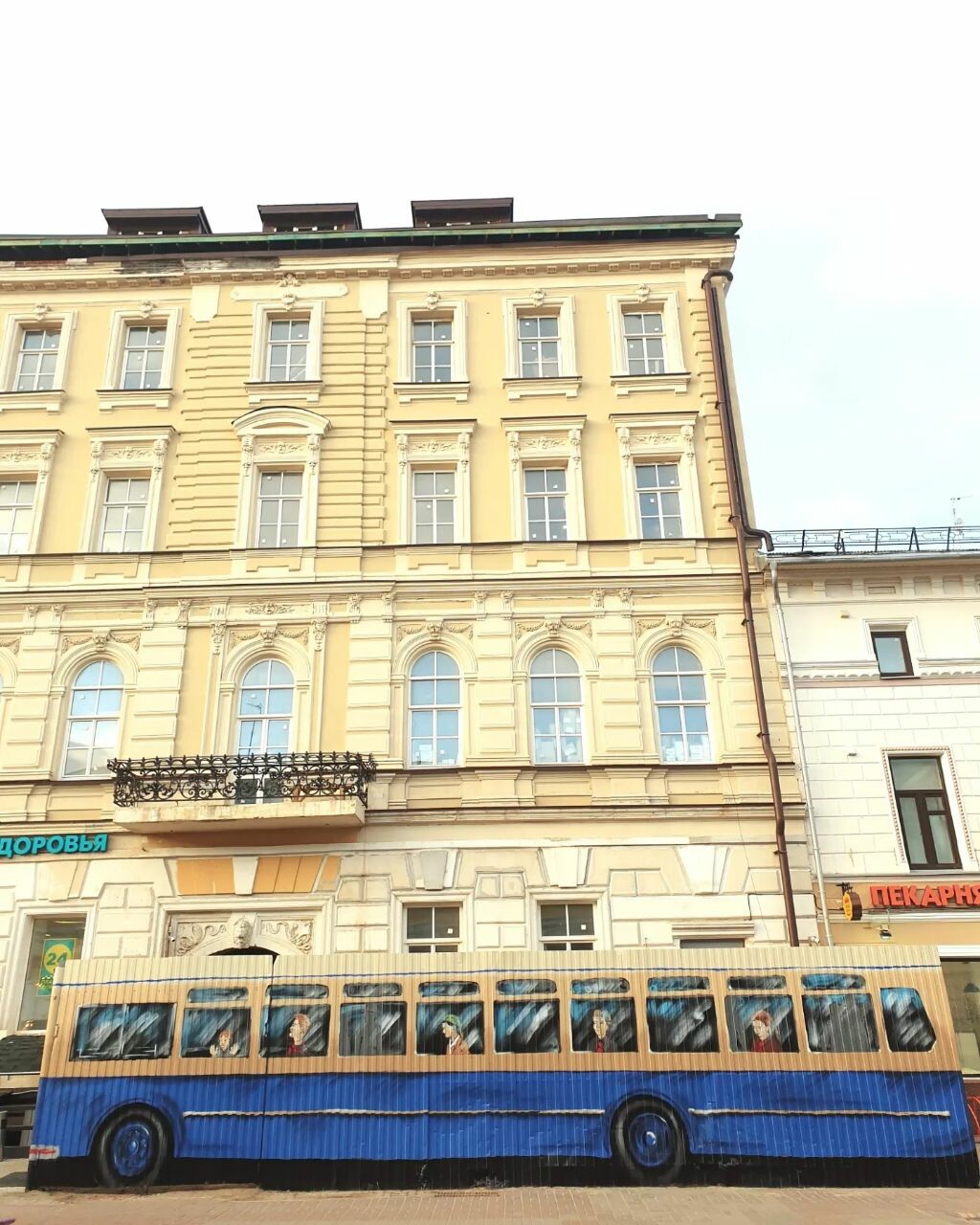 «На Баумана встал троллейбус. На этот раз надолго! Ведь мы его нарисовали. Теперь вместо строительного забора стоит синий троллейбус №1, такой же, как в советские годы. Воссоздаем историческую атмосферу улицы», — говорится в сообщении.
