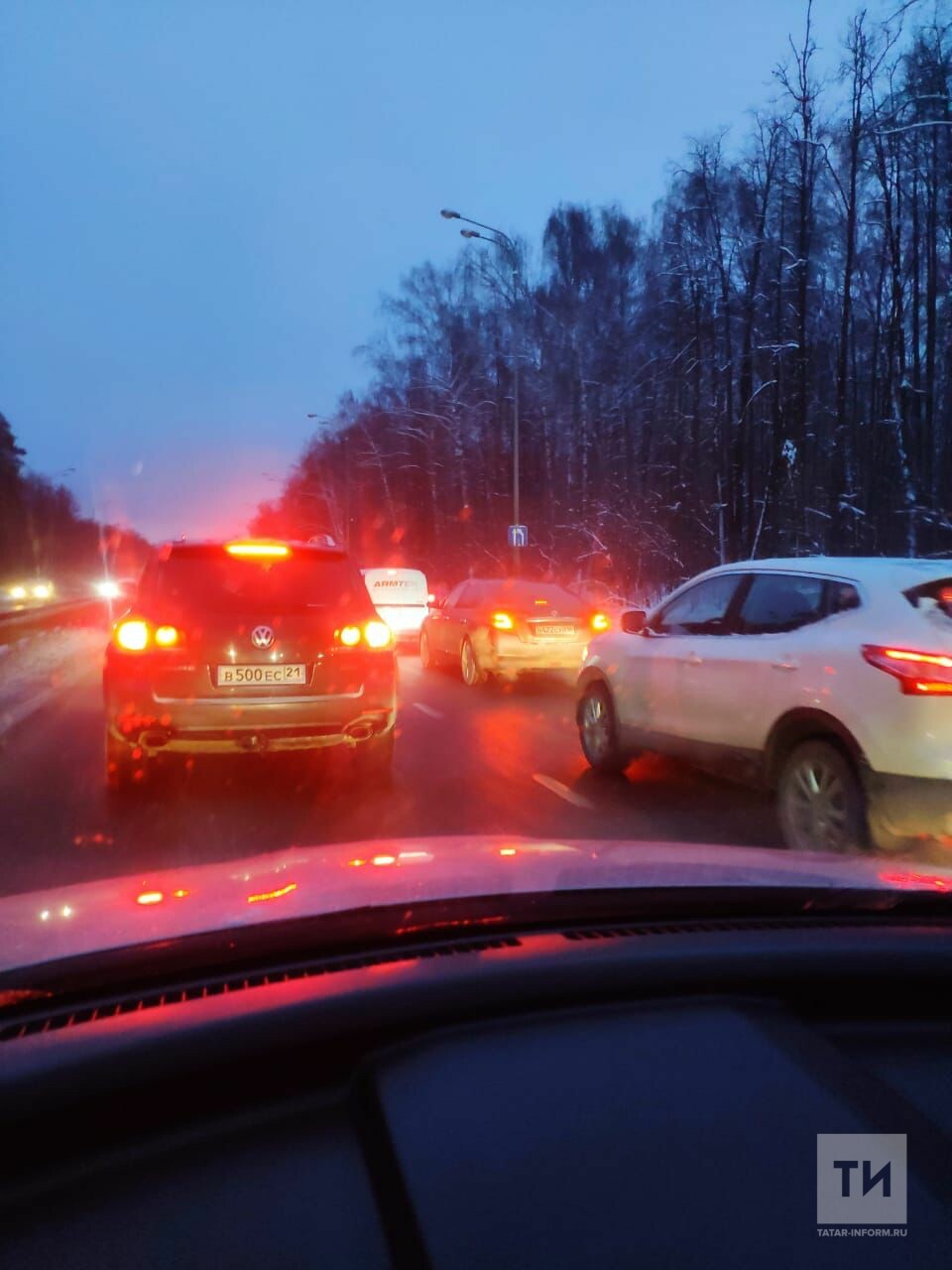 На въезде в Казань образовалась огромная пробка из-за аварии с легковушкой и фурой