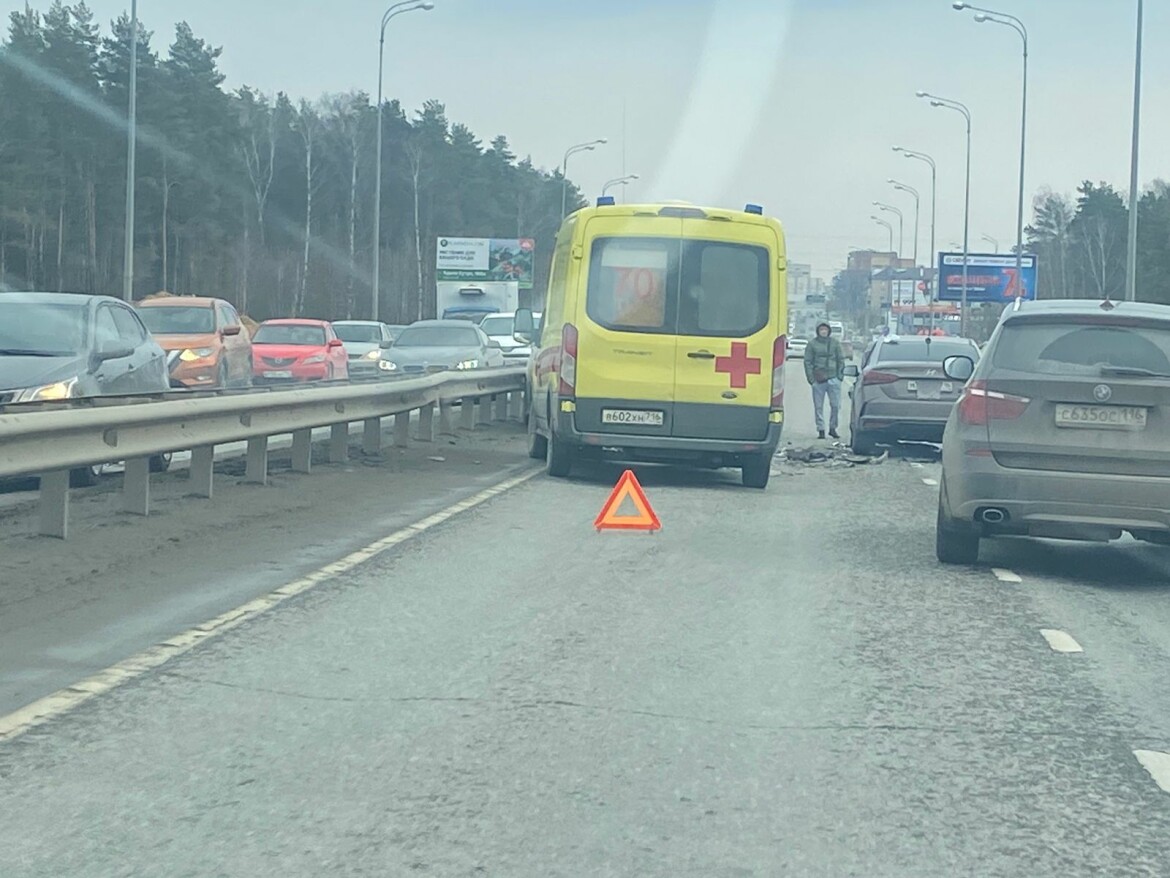 Сегодня на въезде в Казань столкнулись три автомобиля, сообщили «Татар-информу» очевидцы ДТП.