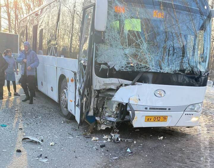На въезде в Зеленодольск из-за ДТП с автобусом собралась пробка