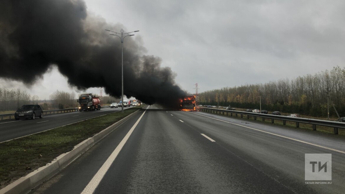 На видео попал горящий на въезде в Казань автобус