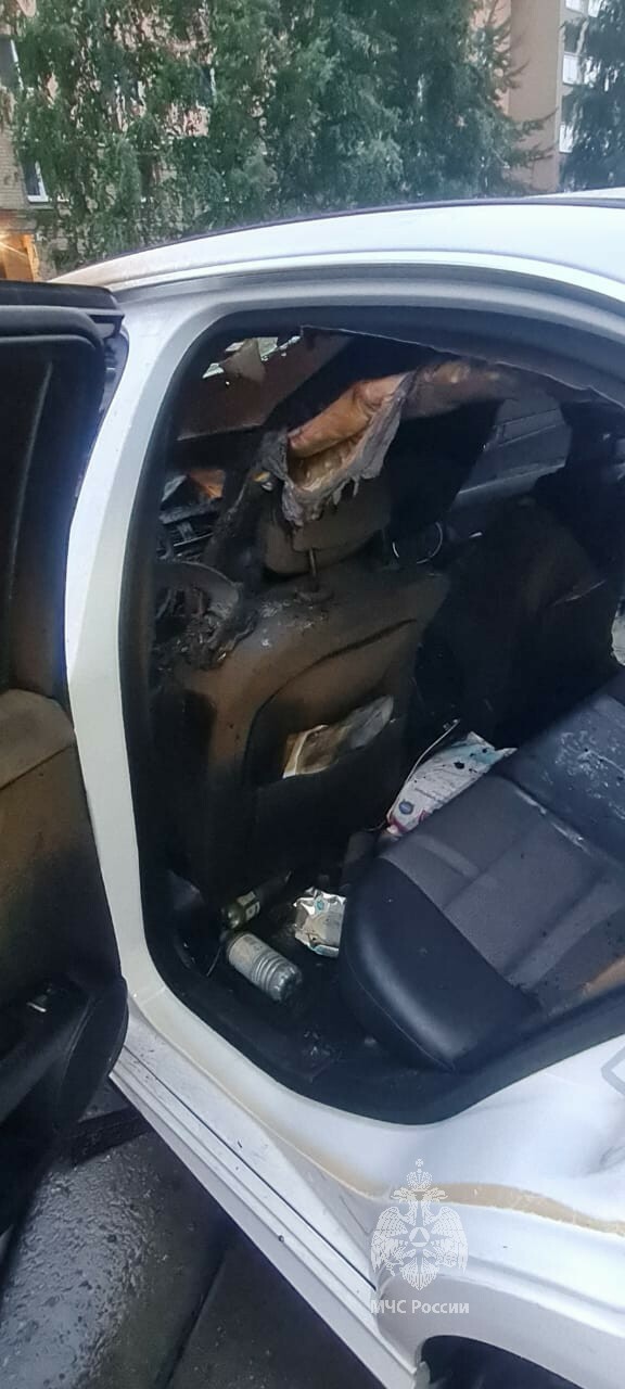 Горение происходило внутри салона, угроза распространения огня на соседние строения и машины отсутствовала. Уже через шесть минут пожарные справились с огнем.