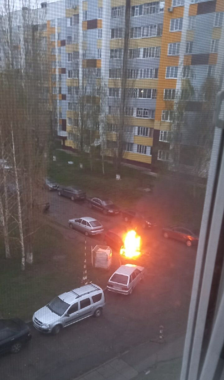 В Набережных Челнах очевидцы сняли на видео, как рано утром во дворе сгорела легковушка.