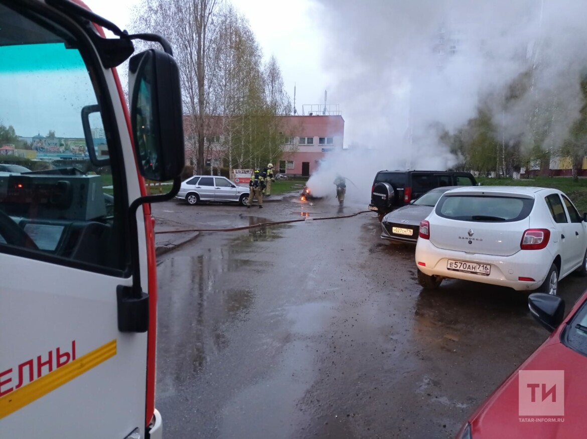 На видео сняли, как в Челнах рано утром горела легковушка, которую подожгли