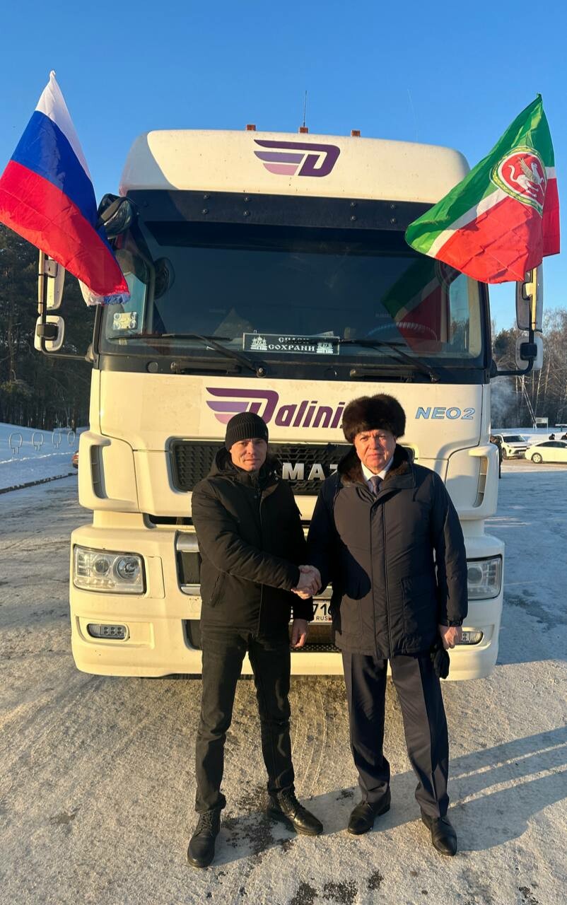 Сергей уже в 9-й раз едет в зону спецоперации, чтобы передать груз шефской помощи, собранный в Набережных Челнах. На этот раз бойцам отправили две машины и строительные материалы. Мэр Наиль Магдеев поблагодарил водителя за помощь и пожелал ему доброго пути.