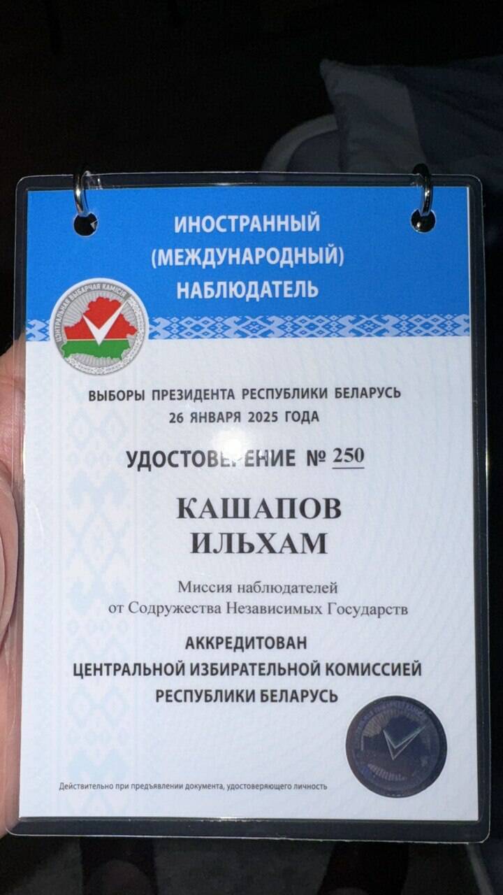 Ставшие наблюдателями от Содружества Независимых Государств представители Татарстана — торгпред РТ в РБ Ильхам Кашапов и руководитель общественной организации белорусов Казани «Спадчына» Сергей Маруденко поделились впечатлениями от организации выборов Президента Беларуси. Об этом пишет газета «Минская правда».