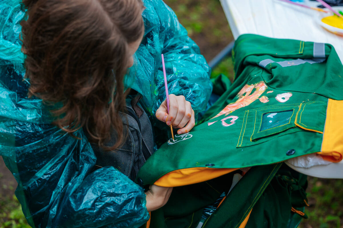 Здесь же прошла презентация апсайкл-коллекции СИБУР и Enter, где гостям показали вещи, созданные из лоскутов вышедшей из обращения спецодежды «Казаньоргсинтеза». Всего в дропе было пять предметов, среди которых два силуэта сумок, панамы, кимоно и куртки.