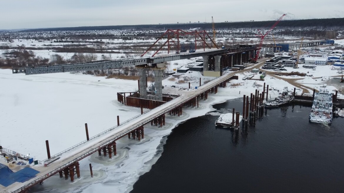 Надвижка пролета моста через Каму на обходе Нижнекамска и Челнов выполнена на 15%