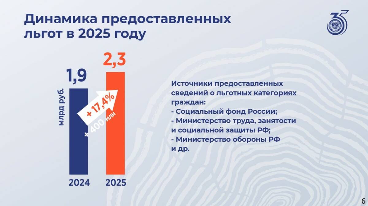 Сумма налоговых льгот составила 2,3 млрд рублей