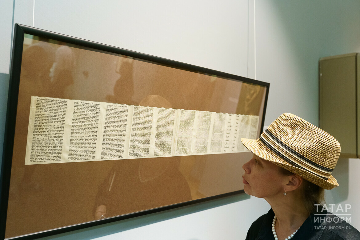Один из экспонатов – длинный список, выполненный мелким плотным почерком на свитке из кожи. Это рукописный лист Торы, над которым кропотливо работал дед известного в Казани художника, заслуженного работника искусств Татарстана и заслуженного художника России Григория Эйдинова Арон Эйдинов.