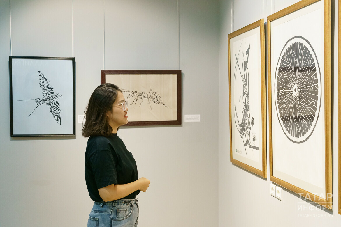 И, конечно, большая часть выставки представлена арабо-графическими работами: здесь и творения Баки Урманче из фондов Музея ИЗО РТ, и произведения современных авторов – Владимира Попова, Наджипа Наккаша, Ришата Саляхутдинова, Альфии Исхаковой, Розы Хузиной, Гульназ Исмагиловой, а также учеников Центра арабской каллиграфии и исламских искусств Казанского исламского университета (РИУ).