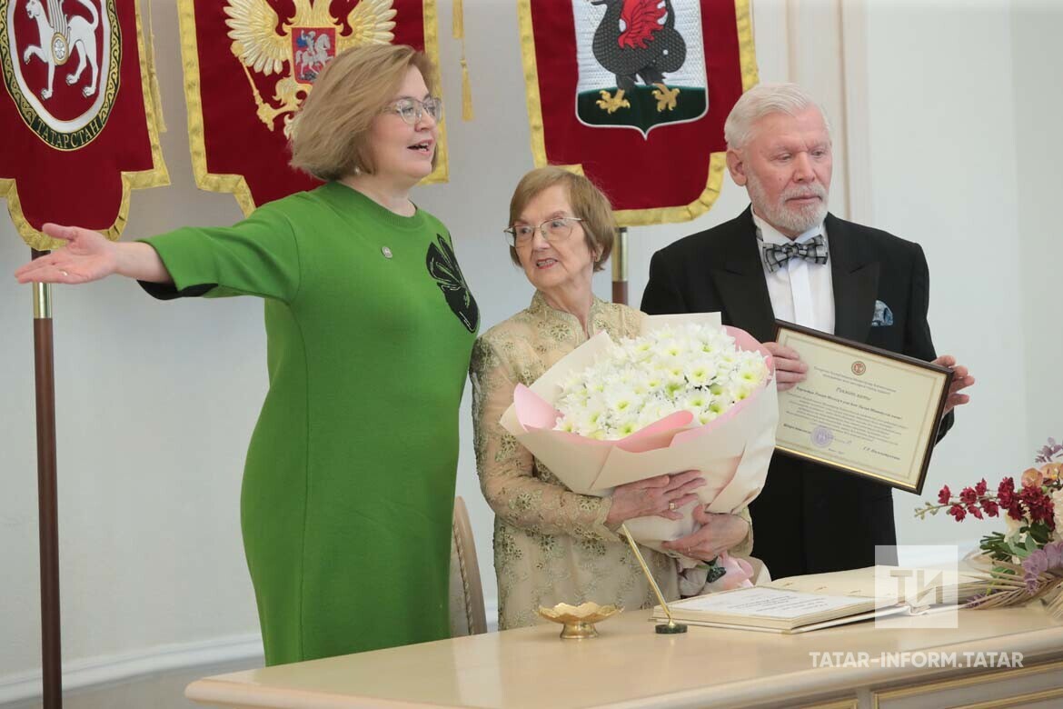 Народного поэта с супругой поздравила также заместитель руководителя исполкома Казани Гузель Сагитова.