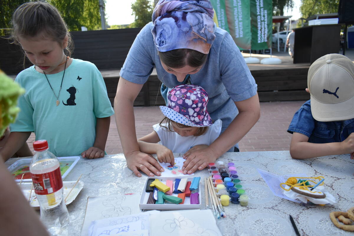 Для детей работали интерактивные площадки: сдача норм ГТО, мастер-классы по изготовлению аппликаций и запуску ракетомоделей. Жители могли познакомиться с изделиями местных мастеров, попробовать себя в народных ремеслах.