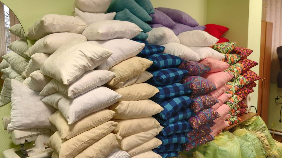 Только за последний месяц здесь сшили более шести сотен подушек. В ближайшее время они отправятся за линию фронта – к тем, кто сегодня оберегает наш мирный сон.