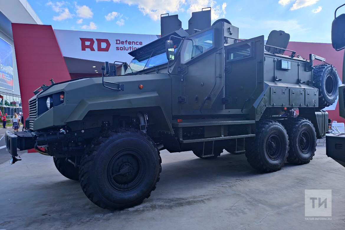 Экспозиция предприятий Татарстана открылась в Конгрессно-выставочном центре «Патриот». Набережночелнинская компания «Ремдизель» в этом году впервые представила защищенный десятиместный броневик З-СТС и автомобиль с бронекабиной К-5350. Обе модели полностью собраны из запчастей российского производства. «Производство этих автомобилей построено на базе серийного шасси, и произведены они полностью из российских комплектующих. Это упрощает и ускоряет сборку. Тем самым завод может увеличить темпы производства и собирать эти машины в большем количестве», — рассказал «Татар-информу» один из представителей «Ремдизеля».
