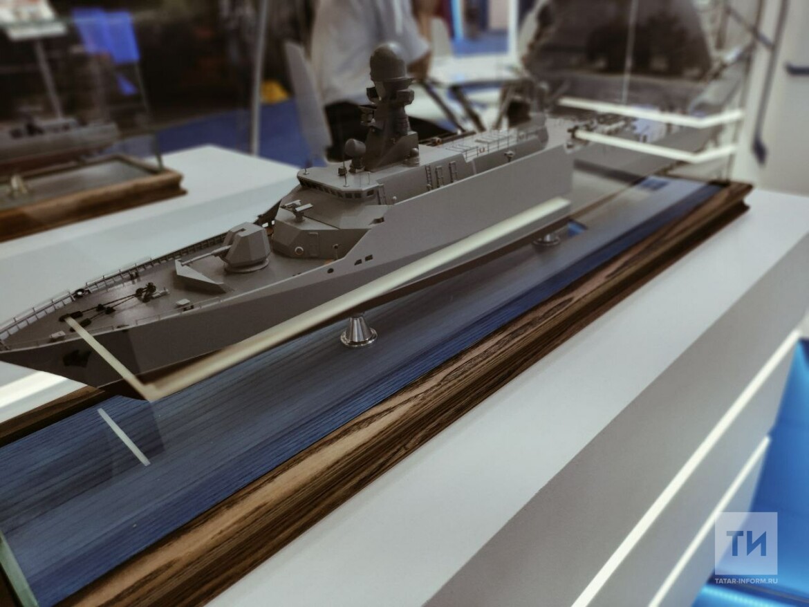 Судостроительная корпорация «Ак Барс» на своем стенде показала новейшие разработки в сфере судостроения: малый ракетный корабль проекта 21632 «Торнадо», фрегат «Гепард-3.9», малый ракетный корабль проекта 21635 «Сарсар» и многоцелевой патрульный корабль проекта 22160.