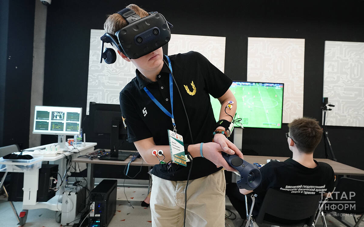 На выставке был представлен проект Поволжского государственного университета физической культуры, спорта и туризма. Программа через датчики может определять физическое состояние спортсмена.