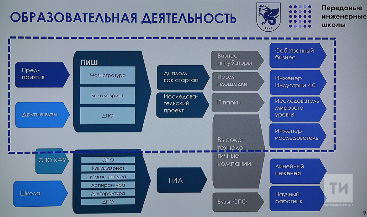 «Что мы имеем на выходе? Мы имеем на выходе выпускников, которые способны организовать собственный бизнес, это инженеры, которые работают в условиях Индустрии 4.0, и, самое главное, инженеры-исследователи мирового уровня», – сказал руководитель КФУ.
