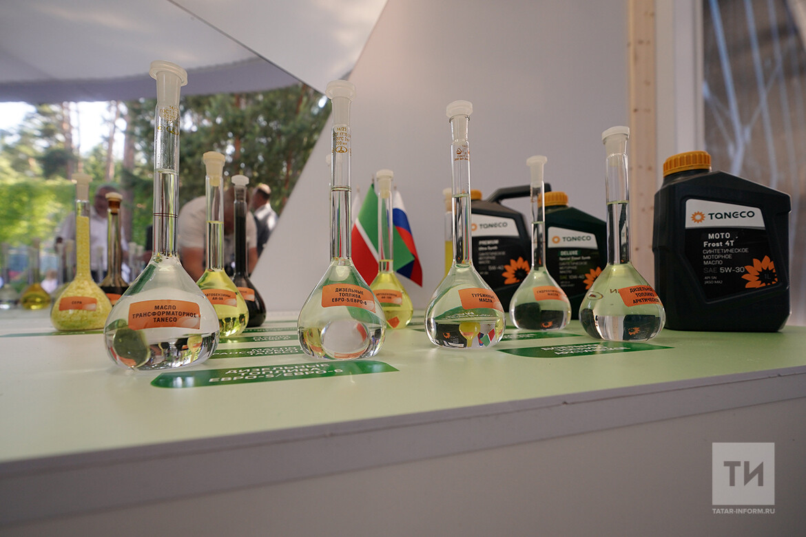 Один из сохранившихся обычаев – выставка достижений нефтяной отрасли, которую посещает Президент Татарстана. Здесь показали и пластиковые трубы, и «умные» приборы для добычи нефти, и интеллектуальные станции. Стенд ТАНЕКО изобиловал колбами с продукцией нефтекомплексе, которых с каждым годом становится все больше.