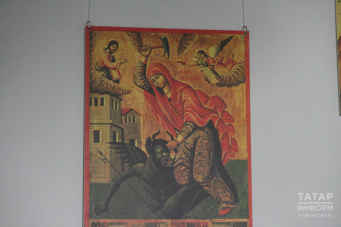 «Есть очень много икон, на которых изображены бесовские вещи. Выглядят они там совсем не прикольно и не весело. Вот, к примеру, мне нравится икона “Святая Марина, изгоняющая бесов”. Согласно преданию, молодая девушка Марина не хотела выходить замуж за правителя провинции, желая податься в монахини. За это несостоявшийся жених-язычник подверг ее пыткам. Девушка молилась, пытаясь найти в себе силы и выжить. Марине, находившейся в заточении, трижды являлся сам Сатана. Сначала он явился к ней в образе змея и проглотил ее, но девушка, находясь в его чреве, прочитала молитву и совершила крестное знамение, тогда бес разорвался изнутри. В следующие раз она вступила с ним в борьбу, в какой-то момент увидела в углу своей темницы медный молот. Она схватила беса и начала бить его по голове», – рассказал «Татар-информу» отец Александр.