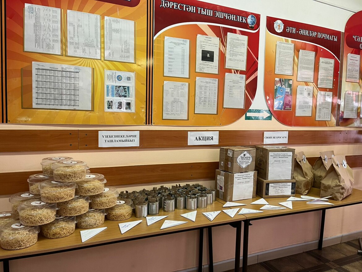 Педагоги этой школы неоднократно собирались для приготовления лапши для отправки в зону СВО. Всего ими отправлено уже 150 контейнеров этого продукта. В среду, 14 февраля, педагогический состав вместе с учениками соберется в школе для приготовления чак-чака. Татарские национальные сладости также будут отправлены на фронт.