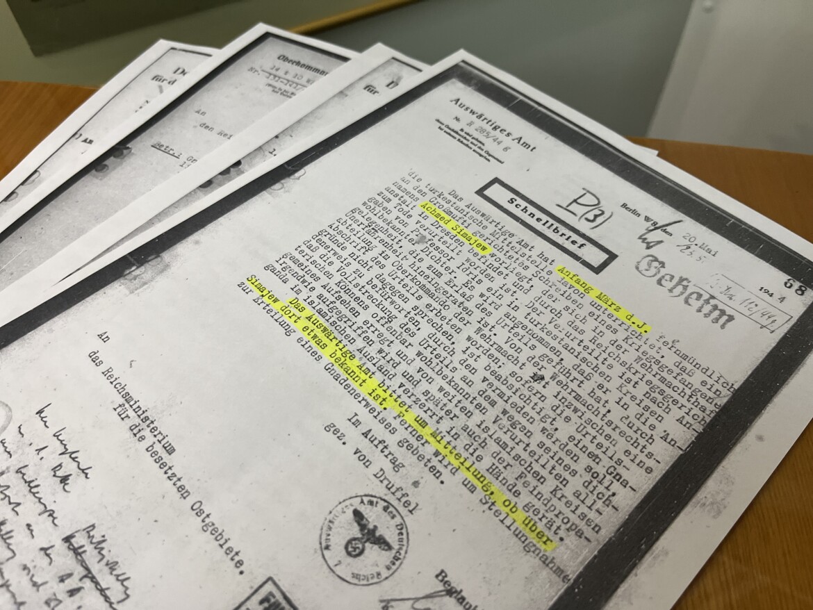 В архивах МИД Германии мечта Гилязова исполнилась. Он нашел серию запросов от мая-июля 1944 года, в которых шла речь о смягчении приговора для организаторов восстания. Эти служебные документы долгое время находились под грифом секретности и не были предназначены для широкой публики. Гилязов считает, что эта переписка имеет важное значение для оценки деятельности татарских подпольщиков против размножения Восточных легионов.
