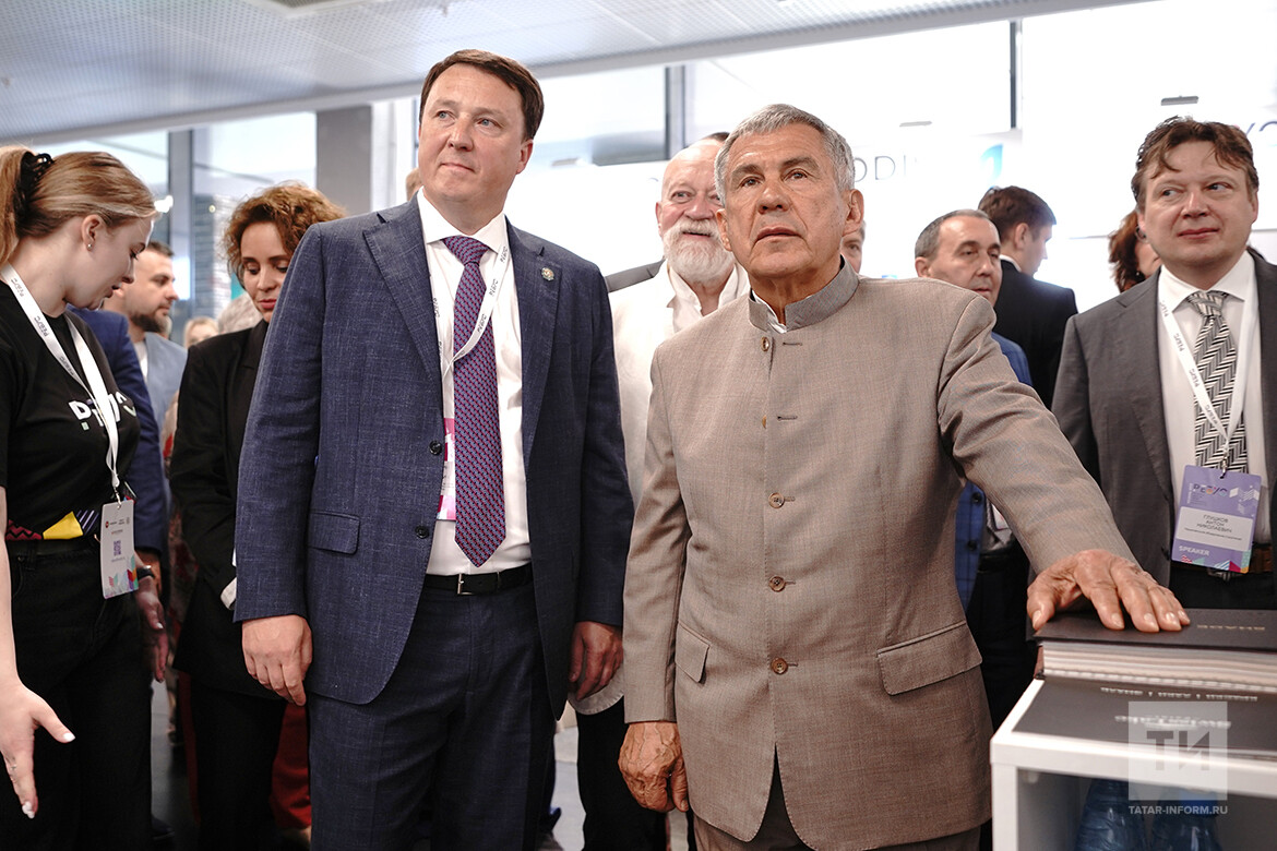 Перед началом пленарной сессии Раис Татарстана Рустам Минниханов осмотрел выставку