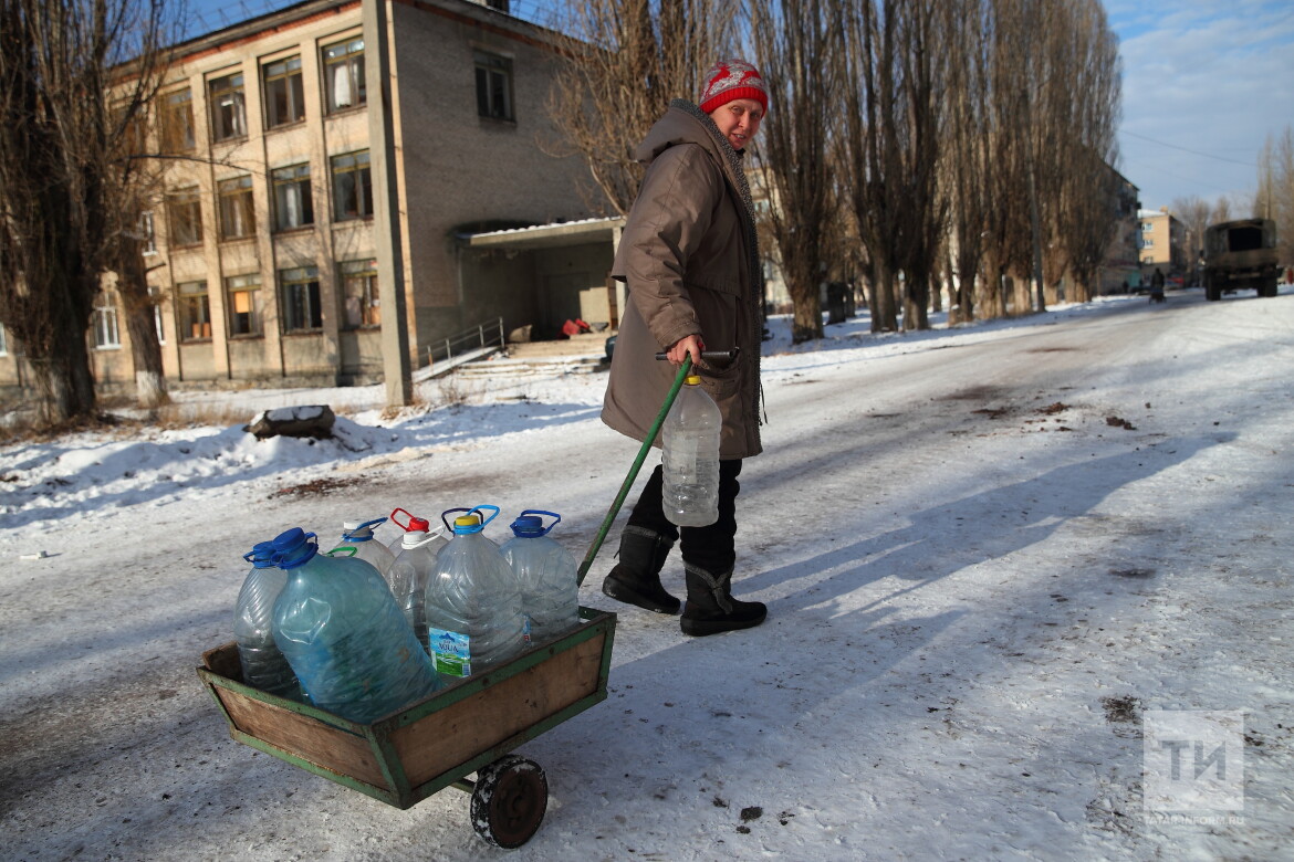Дальше – еще несколько снимков: раздача горячей еды на улицах города, женщина, которая тянет за собой тележку, наполненную бутылками с водой.