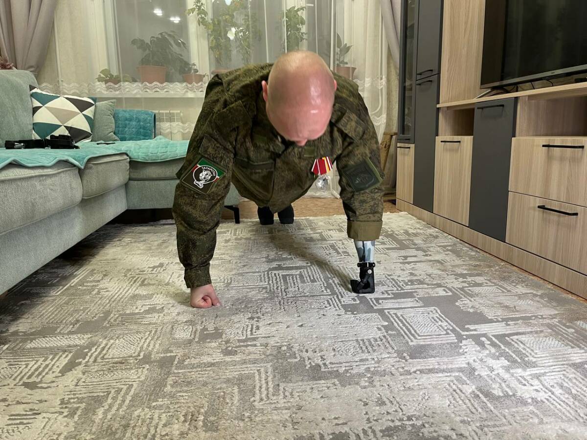 Недавно татарстанский филиал фонда «Защитники Отечества» предоставил челнинцу высокофункциональный протез с несколькими насадками — для отжиманий, для велотренажера, для подтягиваний, а также для более тяжелого веса, чтобы поднимать гири и штанги с тяжелым весом.
