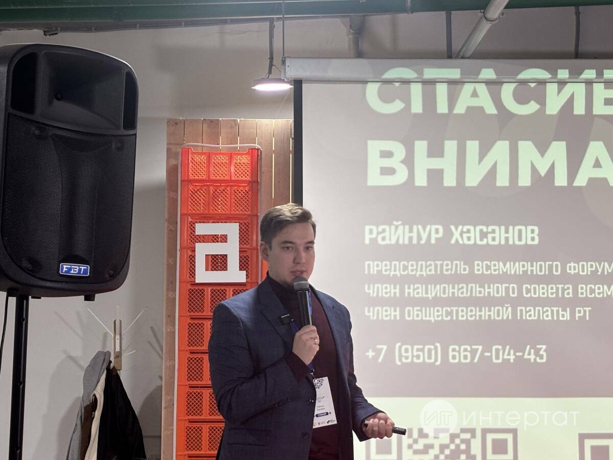 Первым на конференции выступил председатель Всемирного форума татарской молодежи Райнур Хасанов. Он вкратце рассказал о том, чем занимается его организация.