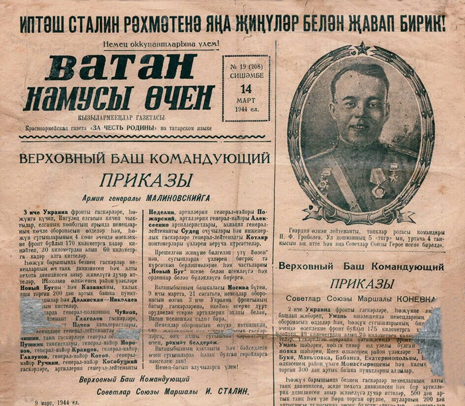 «Красноармейцы-татары, впервые получив газету «Ватан өчен» (За Родину»), прислали в политуправление фронта такие письма: