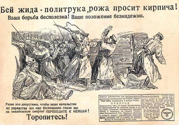Пропагандистская листовка фашистской Германии времен войны, направленная против политруков Красной Армии