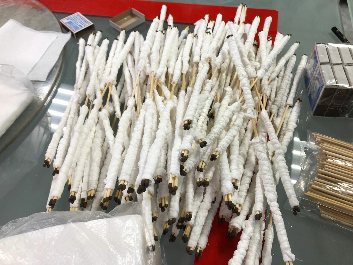 «Все это соединяется, закрепляется ниткой. Процесс нетрудоемкий, зато польза от них будет максимальной, — делится студент, – Они хотя бы длиннее, и будут гореть намного дольше, а также их впоследствии окунают в парафин, что тоже увеличивает срок горения. И ее можно спокойно затушить, а потом впоследствии зажечь. Она, можно сказать, многоразовая».