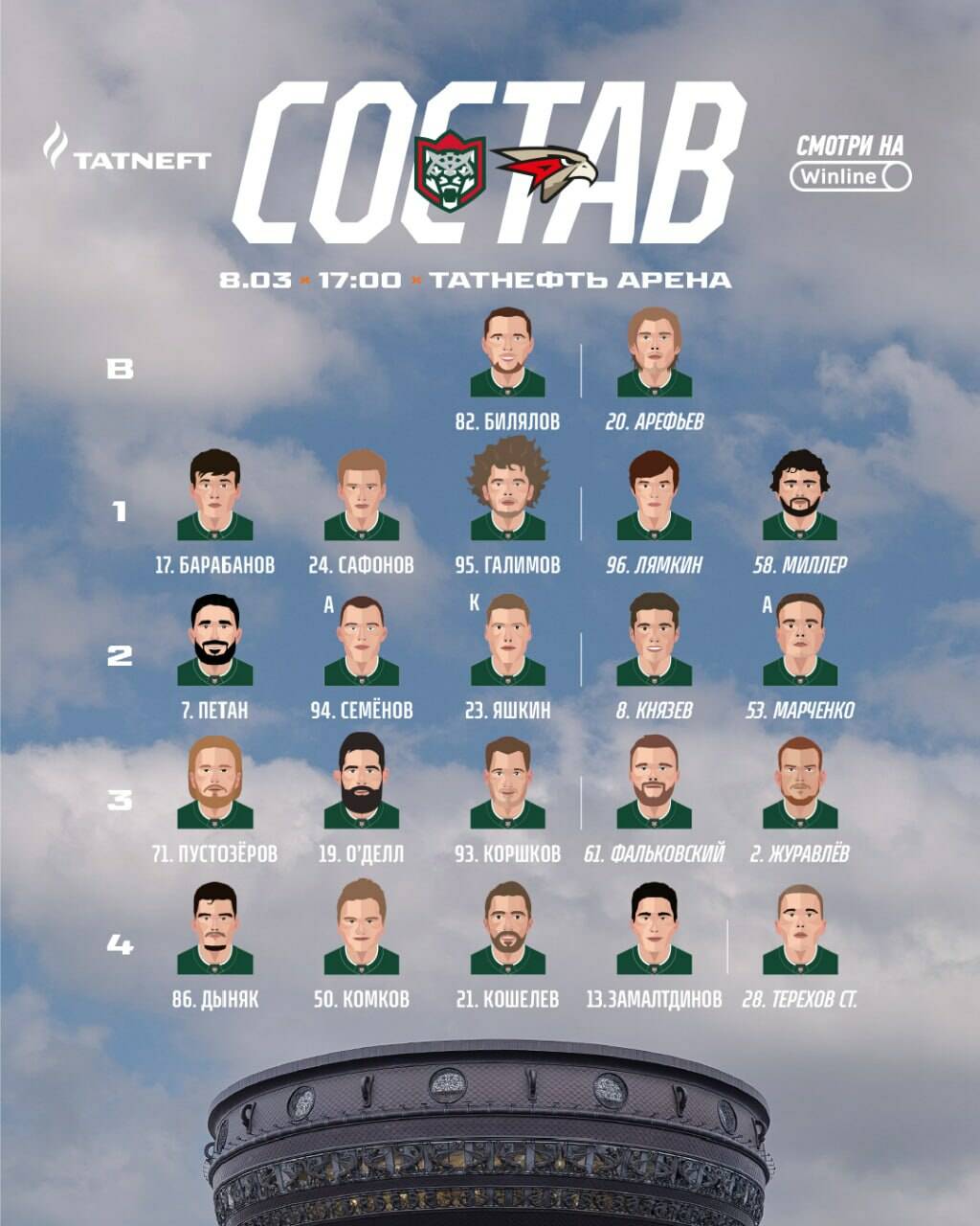 Ник Петан сыграет в матче с «Авангардом». Полный состав «Ак Барса»
