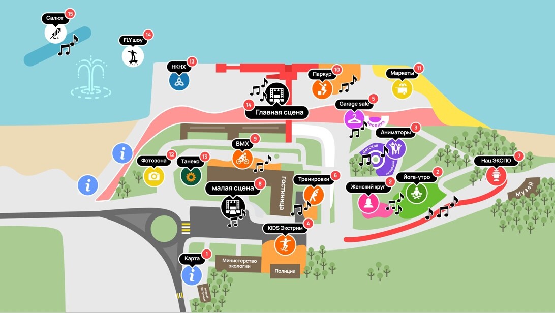 Также в этот день будет организована ярмарка, мастер-классы по флористике и рисованию на мольбертах, будет работать фудкорт, тату-принт и город рабочих профессий.
