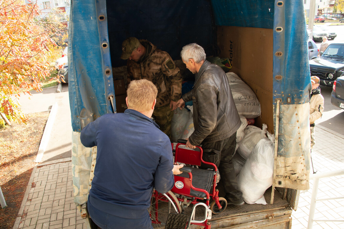 Член местного отделения «Армейское братство» Олег Захаров рассказал, что его участники непосредственно занимаются формированием партий помощи, их сопровождением и доставкой.