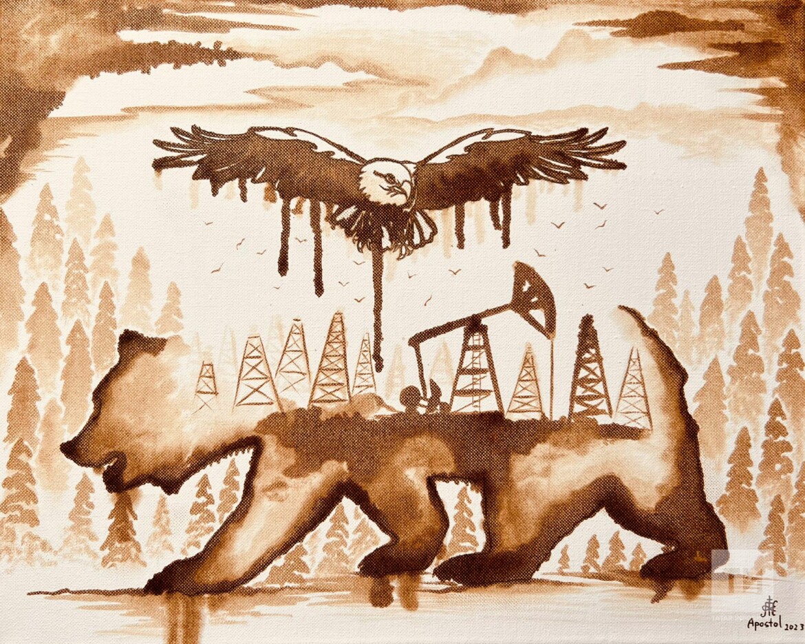 Сегодня в Москве открывается выставка нижнекамского художника Кристиана Апостола. Среди 10 картин, выполненных в уникальной авторской технике сырой нефтью, представлен портрет Раиса Татарстана Рустама Минниханова.