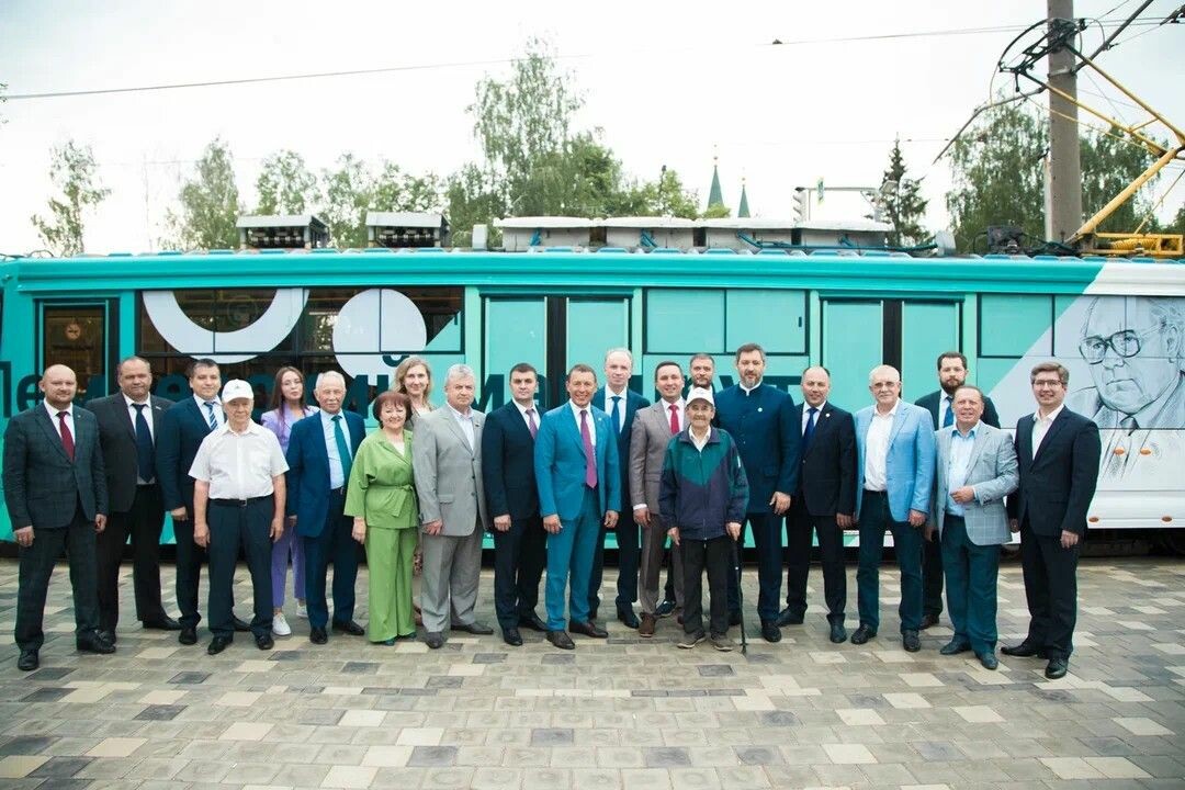 Пассажиры трамвая — руководители города и республики, НКНХ, члены правления СИБУРа — вышли на площади Николая Лемаева. Вместе с представителями профкома, ветеранами предприятия. студентами и горожанами возложили цветы к бюсту первого генерального директора «Нижнекамскнефтехима» Николая Лемаева.