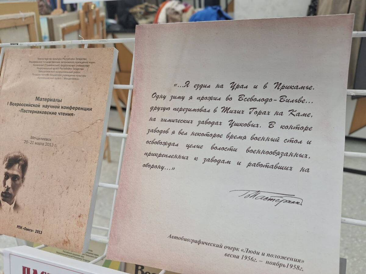 В фойе КЦ «Сайдаш» развернулись экспозиция Краеведческого музея, где прошла презентация туристических маршрутов Менделеевского района, а также выставка, посвященная международному литературно-театральному фестивалю «Пастернаковские чтения».